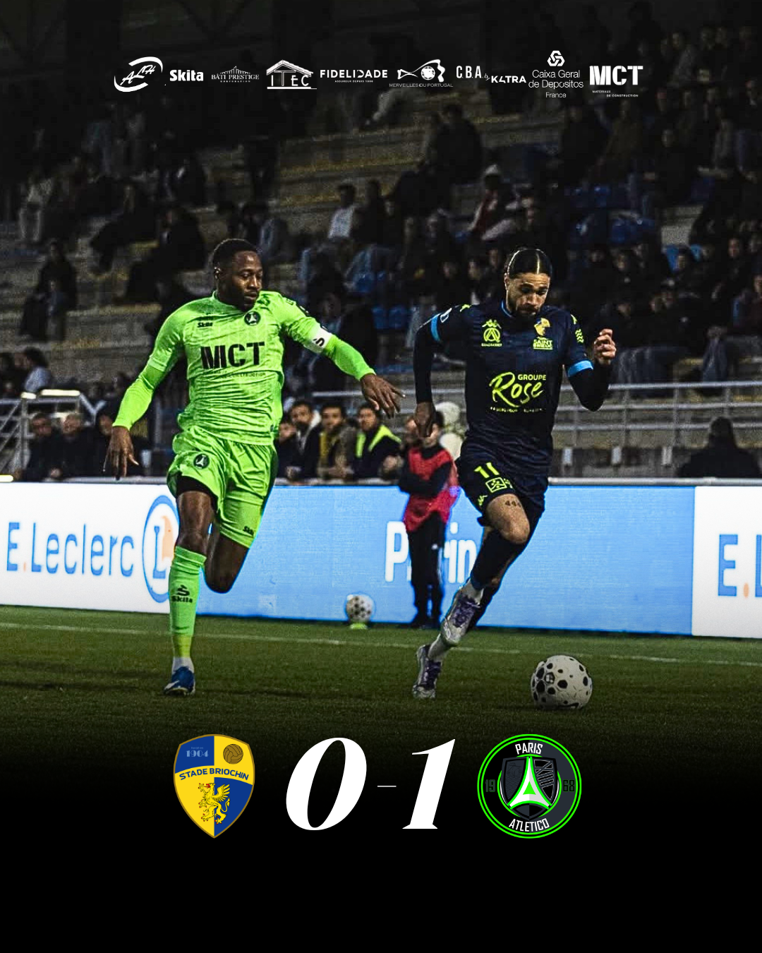 Le Paris 13 Atletico a réalisé un superbe coup en allant s’imposer (0-1) à Saint-Brieuc, concurrent direct au maintien, vendredi lors de la 27e journée de National. Comme lors de notre dernière victoire à l’extérieur à Châteauroux (0-1) le 27 février dernier, notre équipe a arraché la décision lors du temps additionnel. Sur une longue passe dans la surface d’Ambroise Oyongo, Yoane Lasme remet de la tête pour Moussa Diarra qui ne se pose pas de questions et adresse une somptueuse volée aux 20 m (0-1, 90e +1). Notre capitaine inscrit son premier but de la saison de la plus belle des manières.